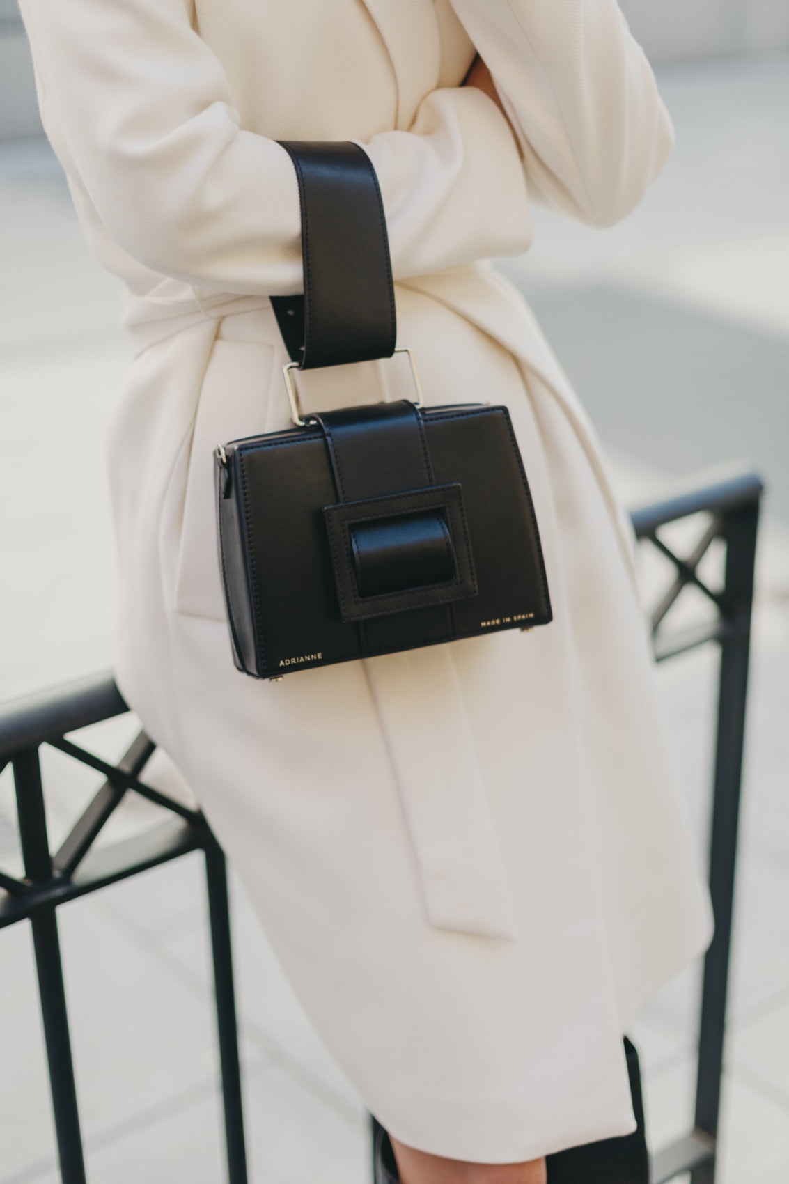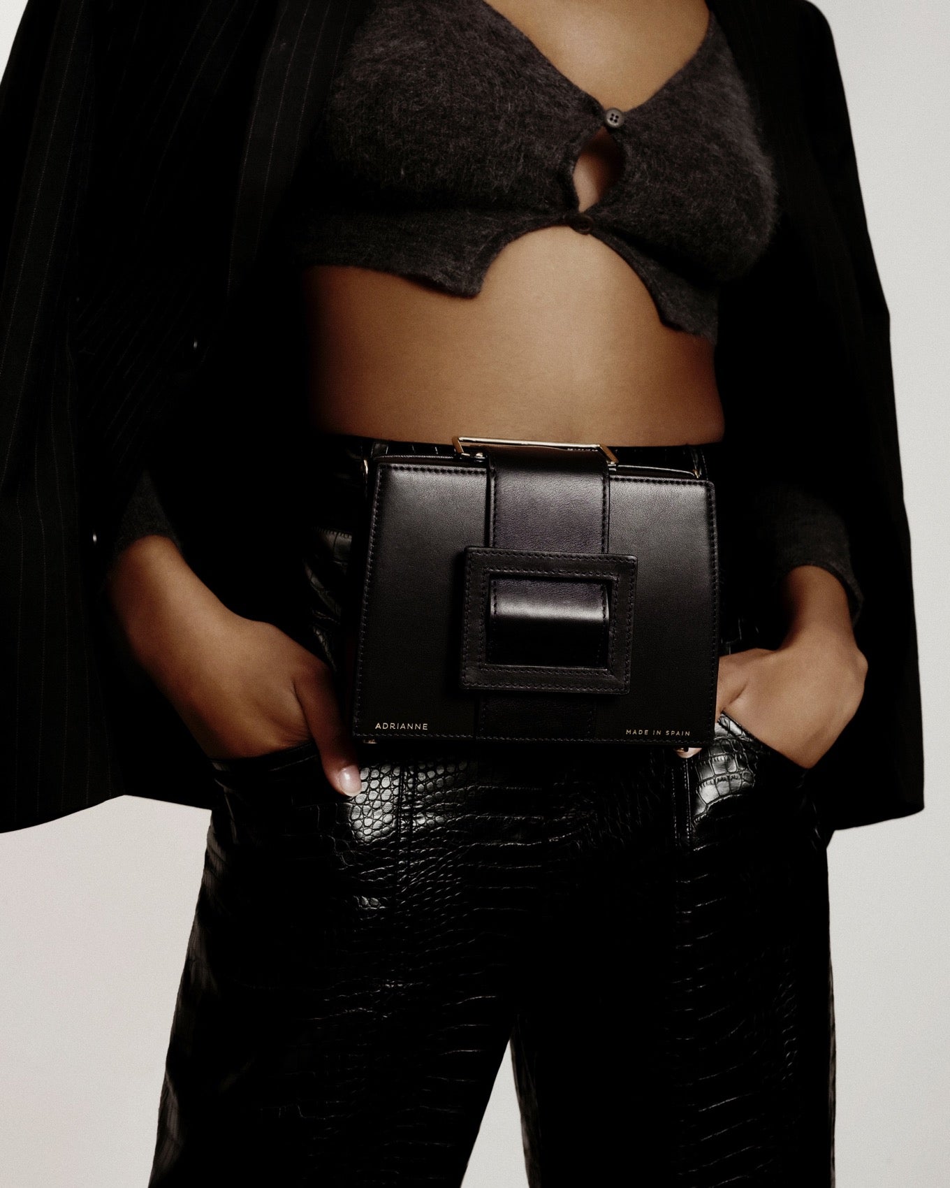 Destaca por su carácter camaleónico y sofisticado. Se puede llevar de cuatro formas diferentes, como bolso de mano, colgado al hombro, como riñonera, o colgado de la muñeca mediante una pulsera de piel.
